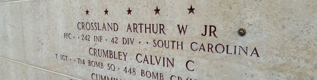 A bronze rosette is placed next to the name of Arthur W. Crossland