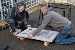 The National Guard Association’s monument at Omaha Beach is one such example. When the association planned to install a new commemorative plaque, ABMC’s Normandy American Cemetery and Leigland volunteered to assist. Due to the association’s geographic distance, Normandy American Cemetery staff retrieved the plaque from the fabricator, coordinated with a local contractor for installation, and helped determine its placement using a wooden mock-up.