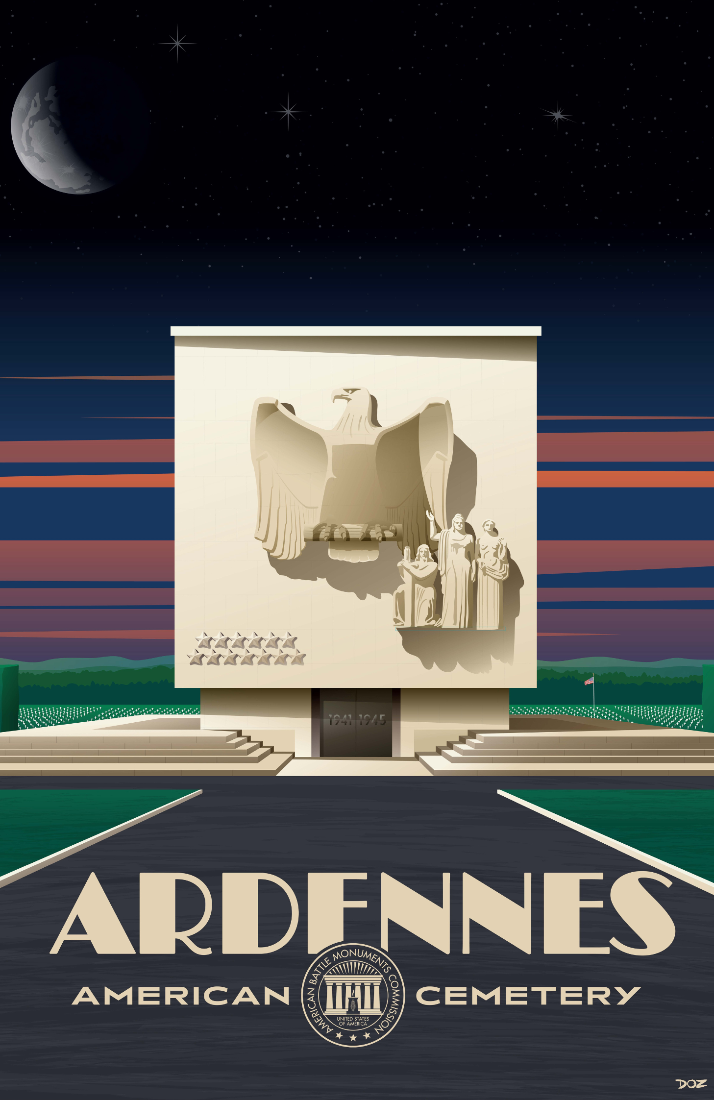 A vintage poster was created by French artist DOZ for all ABMC cemeteries and five monuments and memorials to mark ABMC’s centennial. A high-resolution printing file for each poster is available here for personal use. Printed and framed copies of the posters are available for purchase from our partner organization, the American Battle Monuments Foundation, at www.abmf.org. Please note that the posters are copyrighted and may not be reproduced for commercial purposes. Please contact ABMC Public Affairs at publicaffairs@abmc.gov with any questions.