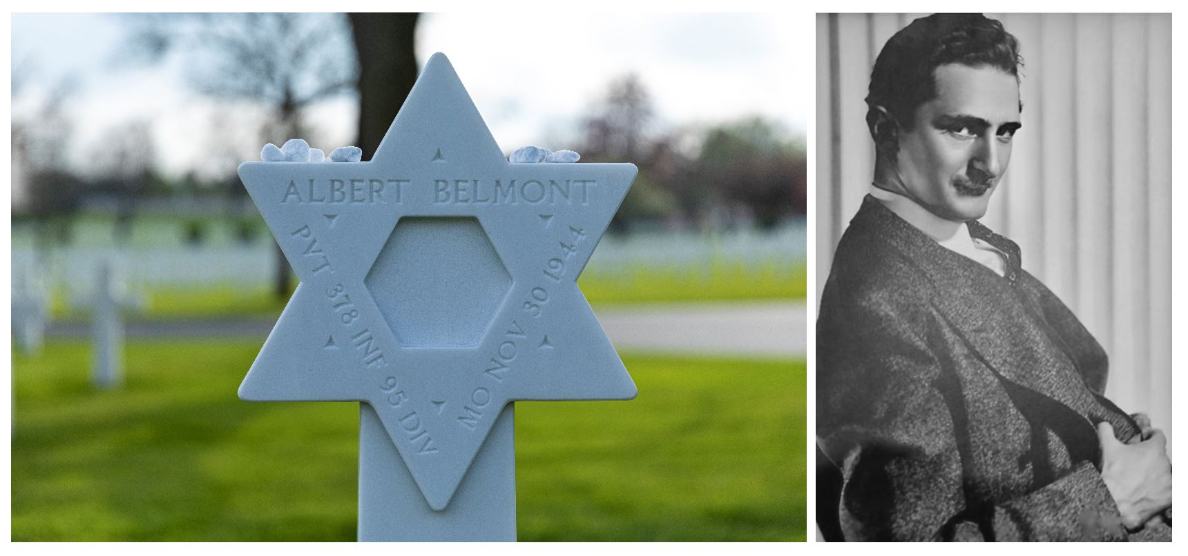 | Pvt. Albert Belmont from Syracuse, New York/Kansas City, Missouri – Born Abraham Belkowitz in 1911 in New York City, the family moved to Syracuse, New York where they adopted the surname “Belmont.” He married, moved to Kansas City, Missouri, and had two daughters before volunteering for military service in 1943. He was killed on November 30, 1944, during an operation in France and buried at Lorraine American Cemetery, France. His daughter, Barbara was only three when her father was killed. The memory of her father’s loss is still very much with her. He is buried Plot J, Row 19, Grave 32. |