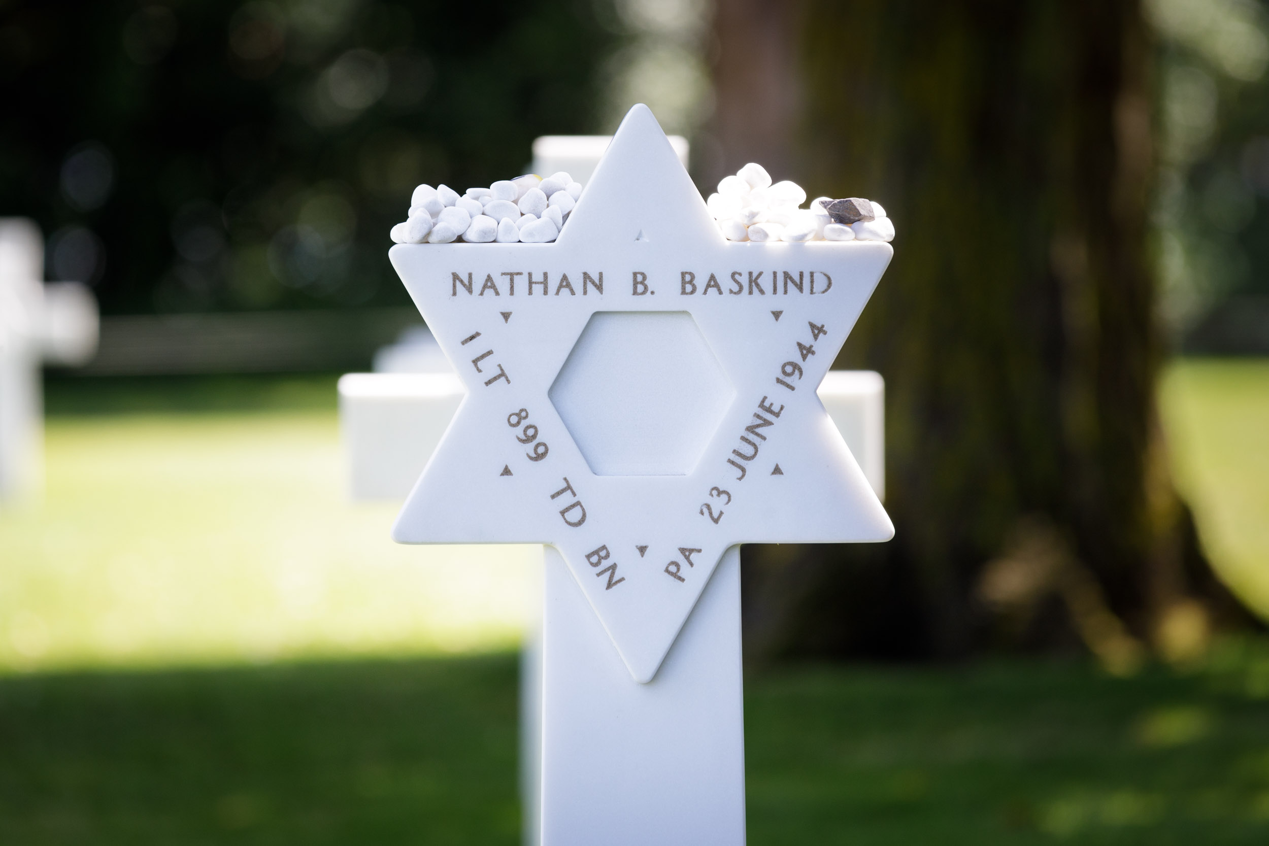 Jewish-American U.S. Army 1st Lt. Nathan B. Baskind was laid to rest with full military honors at Normandy American Cemetery, France, today, 80 years after his death during World War II.